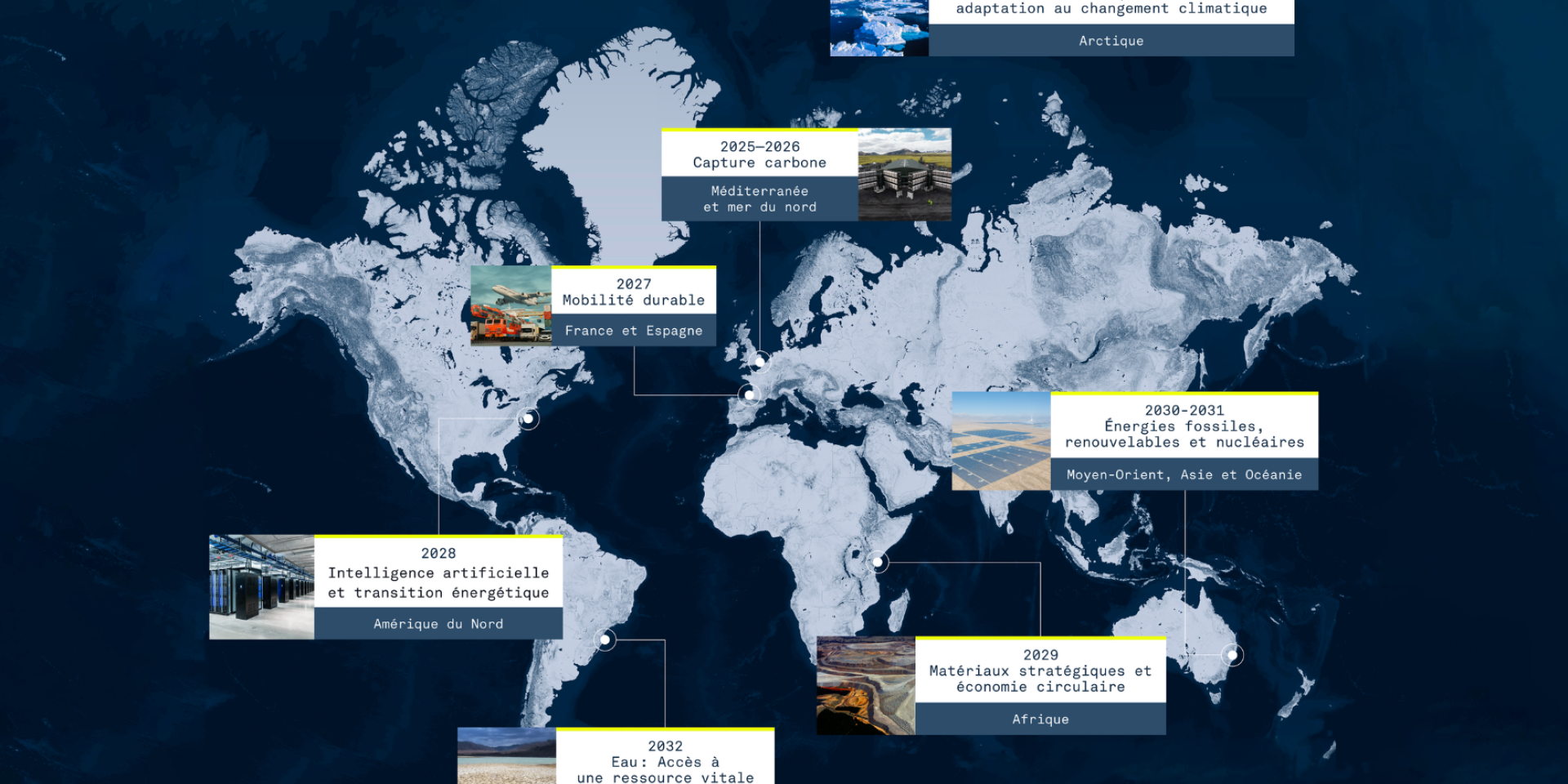 Captation du carbone, transition énergétique, régénération des puits naturels, résilience et adaptation au changement climatique.