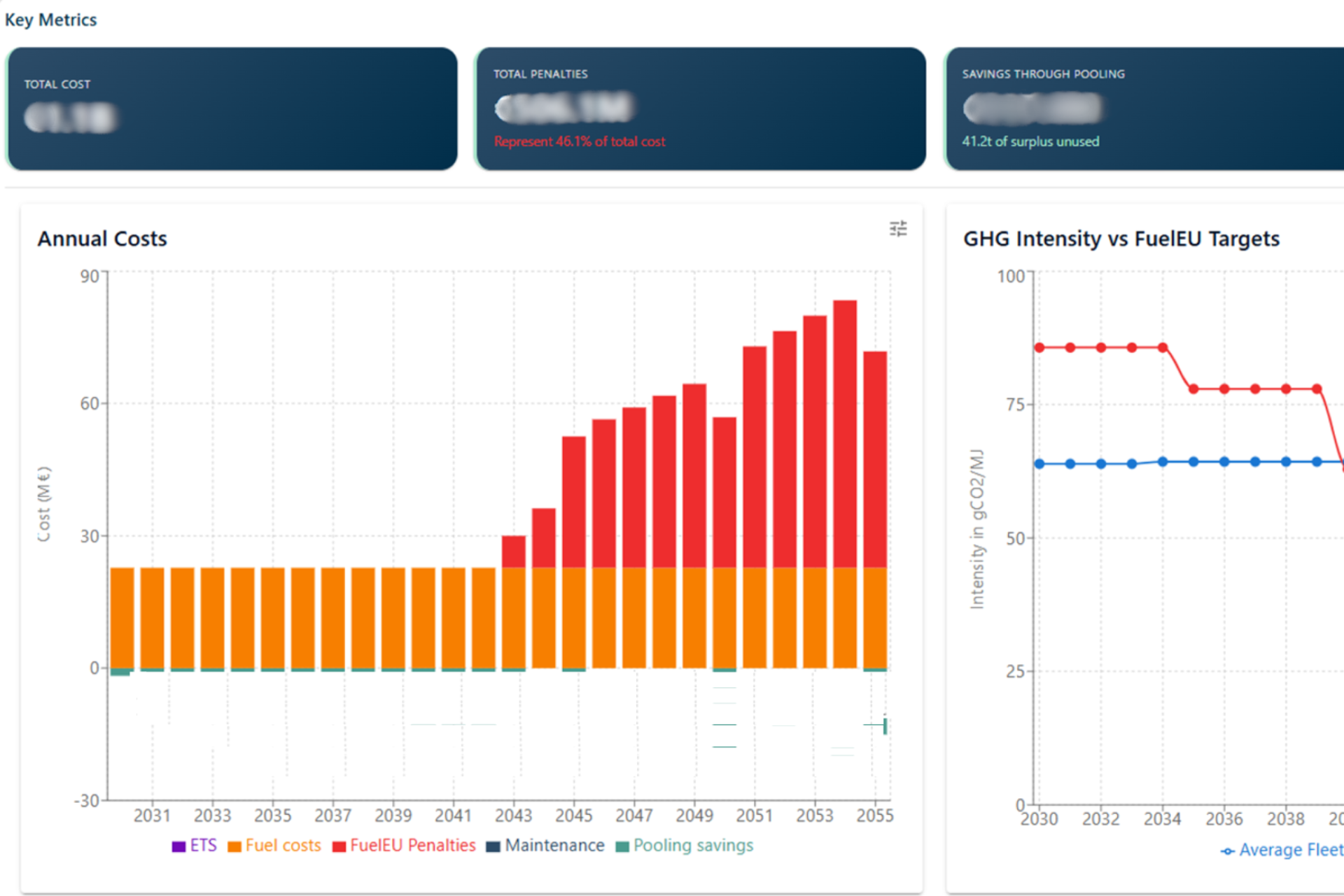 EOCompass® is our software solution for decision-making and energy optimization. It allows users to compare alternative fuels based on their actual impact, to simulate costs and regulatory penalties, to optimize energy allocation during operation, and to manage a fleet's carbon performance.